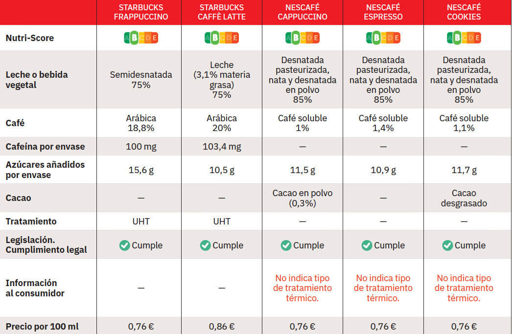 Comparativa de cafeína en diferentes variedades de NESCAFÉ